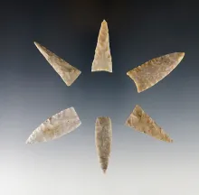Set of 6 well made Triangle Points found in the Kentucky/Tennessee area. The largest is 1 3/4". |