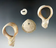 Set of four shell ornaments found in Virginia, largest is 2 11/16". |