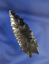 2 1/4" Elko Corner Notched made from heavily patinated Obsidian, found in Oregon. |