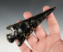 Large 5 5/8" Precolumbian Spear made from gold-sheen Obsidian. Restored break near tip. Mexico. |