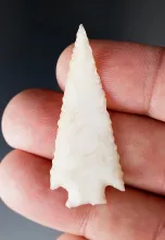 Exceptionally thin 1 7/8" Snake River dart point made from a flake of quality chalcedony - Idaho. |