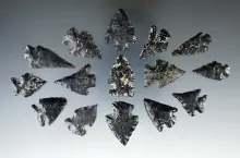Group of 15 assorted Obsidian arrowheads found in Twin Falls Idaho. Largest is 1 1/2". |