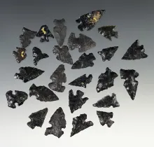 Group of 25 Assorted Arrowheads made from Obsidian and Basalt. Found in Twin Falls, Idaho. |