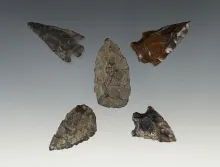 Set of 5 assorted points found in Idaho in the 1940's - 50's. The largest is 1 7/16" |