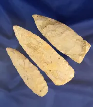 Set of three large Flint Blades found in Illinois, largest is 4 13/16". |