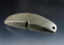 5 7/16" long by 3 1/4" wide Elliptical Gorget - dark green Slate. Found Indiana in 1935. INDIANA 300.00