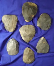 Group of Seven Hornstone Blades found together in a cache in Eaton, Indiana. Largest is 4 1/16". |