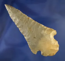 3 7/8" Hornstone Turkeytail that is well flaked with a needle tip found in Harrison Co., Indiana. |