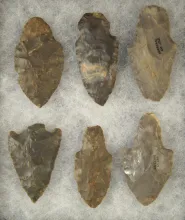 Set of six Hornstone Nodena points found in Harrison Co., Indiana. Largest is 2 1/2". |