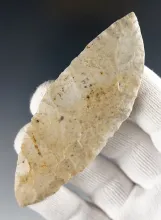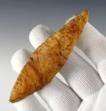 Fine 3 1/3" Stemmed point found by Joshua Jordon in 1980, Geary Co., Kansas. Ex. Mitch Lewis. |