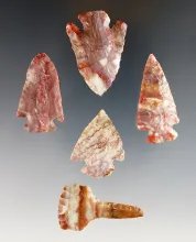 Set of 5 assorted arrowheads all made from beautiful Alibates Flint. Found in Kansas. |
