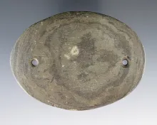 3 5/8" Glacial Kame Oval Gorget made from green and black Banded Slate. Found in Saginaw Co., MI. |