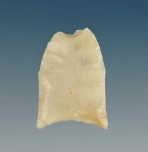 1 5/16" Paleo Clovis found in Kentucky. Made from patinated chert and comes with a Rogers COA. |