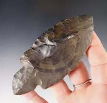 1 5/16" Paleo Clovis found in Kentucky. Made from dark gray chert. Comes with a Rogers COA. |
