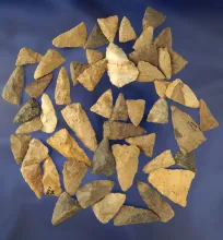 50 assorted Triangular Arrowheads found in Greenup Co., Kentucky - Judge James Claxon collection. |