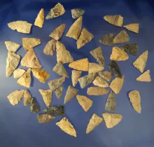 Group of 50 Assorted Arrowheads found in Greenup Co., Kentucky. Ex. Claxton. Largest is 2 1/2". |