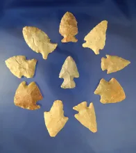 Group of 10 assorted Arrowheads - Greenup Co., Kentucky from the Judge Claxton Collection. |