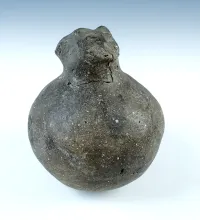 5 3/4" tall by 4 1/2" wide Owl Effigy Hooded Bottle made from shell tempered clay - Missouri. |