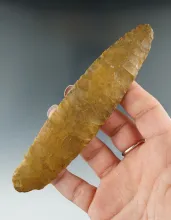 5 3/8" Jasper Paleo Lanceolate found in Pennsylvania. Nice early flaking. |