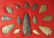 14 assorted arrowheads found on a shelf in the basement of a circa 1700s farmhouse in New York |