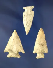 Set of 3 Cornernotched Arrowheads from Cole Co., Missouri. Largest is 2". | MISSOURI | ||