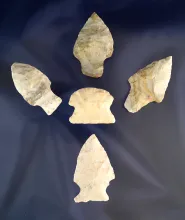 Set of five assorted arrowheads found in Benton County Missouri. Ex. Reinking & Meadows. |
