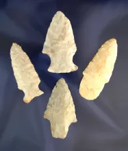 Set of 4 assorted arrowheads, largest is 2 3/8", Benton Co., Missouri. Ex. Reinking & Meadows. |