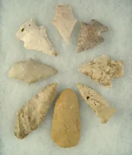 Set of eight assorted Arrowheads, largest is 2 3/4" found in Pettis Co., Missouri. |