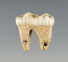 7/8" long Drilled animal tooth found at Site 46-MS-36 in Mason Co., West Virginia. Bennett COA. |