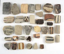 Set of 36 anciently salvaged pottery shards in various shapes. New Mexico. The largest is 2 9/16". |
