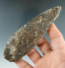 Pictured! 4 11/16" patinated Knife River Flint Archaic Blade found in Eastern South Dakota. |