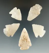 Set of five chalcedony arrowheads found by Harlan Olson in Kingsbury Co., South Dakota. |
