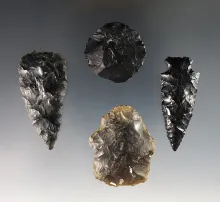 Set of 4 Obsidian points - California and Nevada. The largest is 1 15/16". All come with COA's. NEVADA 50.00
