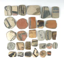 Set of 30 anciently salvaged pottery shards in various shapes. All found in New Mexico. | NEW MEXICO | 85.00 |