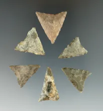 Set of six triangle points found in Granville Co., North Carolina, largest is 1". |