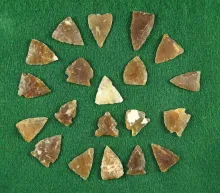 Group of 20 small arrowheads found in the Dakotas, largest is 11/16" Most are Knife River Flint. | SOUTH DAKOTA | 70.00 |