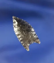1 3/16" Columbia Plateau that is nicely flaked from Obsidian with one restored ear. Found in Oregon. |