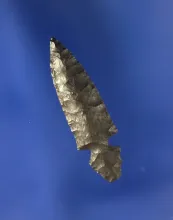 2 1/8" exceptionally well flaked Snake River Dart - nicely translucent banded Agatized Wood. OREGON 160.00