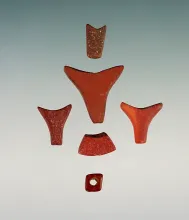 Set of 8 Triangular Catlinite Beads found at the Townley-Read Site, Geneva, New York. |