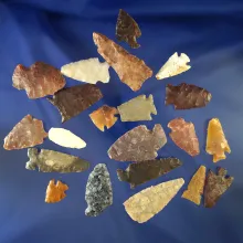 Set of 21 assorted arrowheads in various conditions, largest is 1 5/8". Wyoming. |