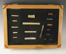 Nice framed group! 17 bone artifacts found a site in Tennessee including beads and a flaking tool | TENNESSEE | 85.00 | |