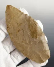 Thin & well made 5 1/4" Tennessee Paleo Lanceolate. Excellent grinding to the lower blade edges. |