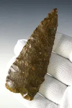 Large 4 5/8" Smith made from patinated tan and gray chert. Found in Oklahoma. COA. |