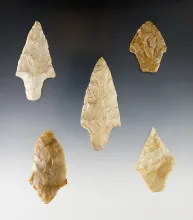 Set of 5 nice Gary Points found in Oklahoma and Louisiana. The largest is 3". |
