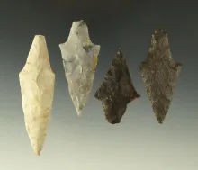 Set of four stemmed points found in Oklahoma, largest is 2 11/16". |