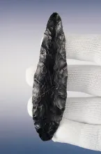 Nice 2 1/8" Buchanan made from Obsidian. Found in Oregon. |
