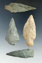 Hard To Find! Set of four assorted arrowheads found in Rhode Island in the mid-1800s. |