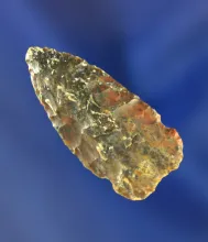 Highly translucent 1 11/16" agate constricted base point. Wyoming. |