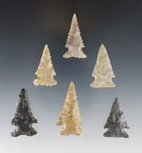 Set of 6 nice Ensor Points found in Texas. The largest is 1 3/4". |