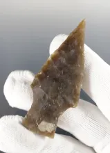 Excellent style on this 1 7/8" Stemmed Dart Point made from attractive material, found in Texas. |